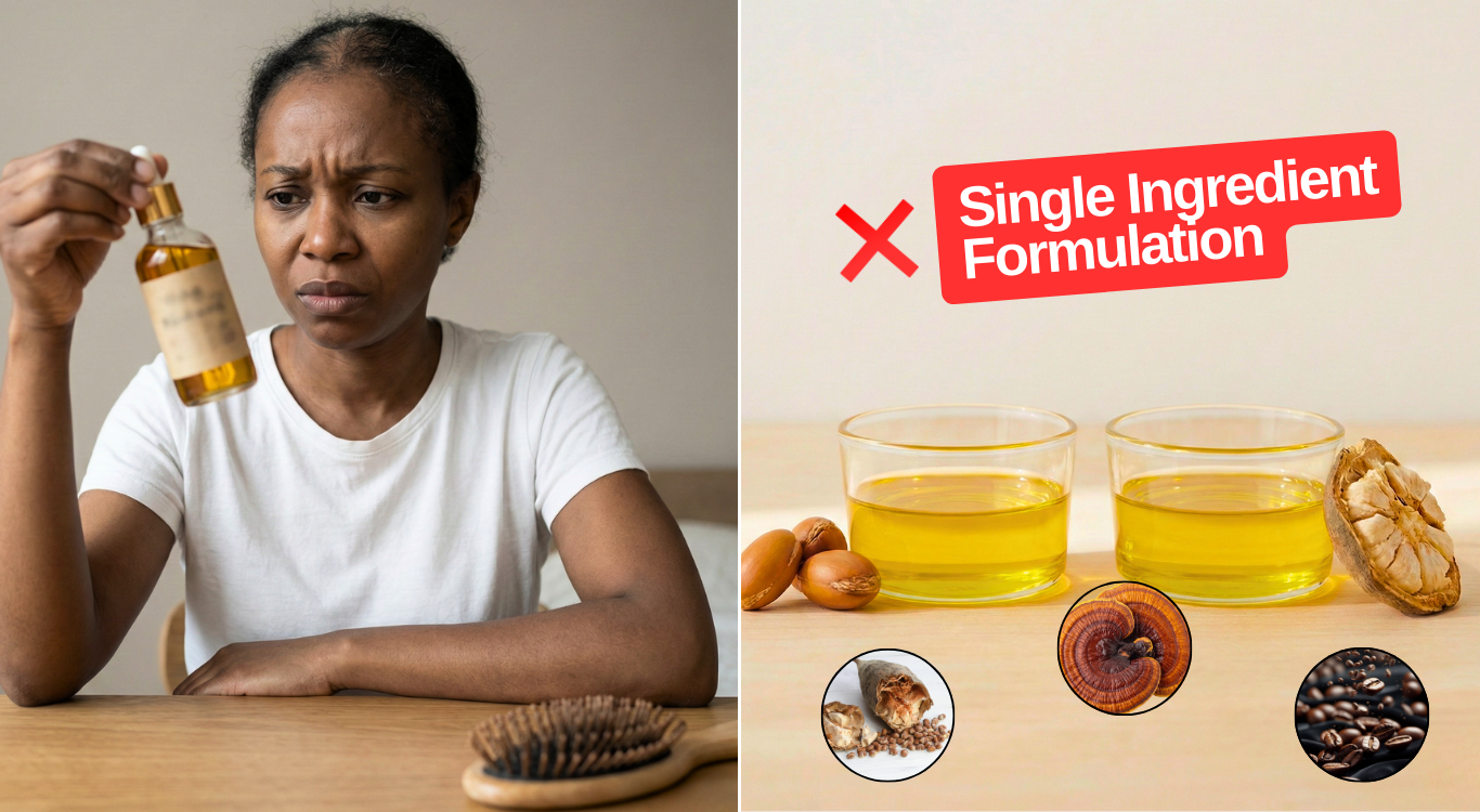 They'd try an oil that worked for one thing — maybe it made their hair softer, or reduced some breakage — but other problems persisted. Growth stayed slow. Edges remained thin. Length retention was still an issue.